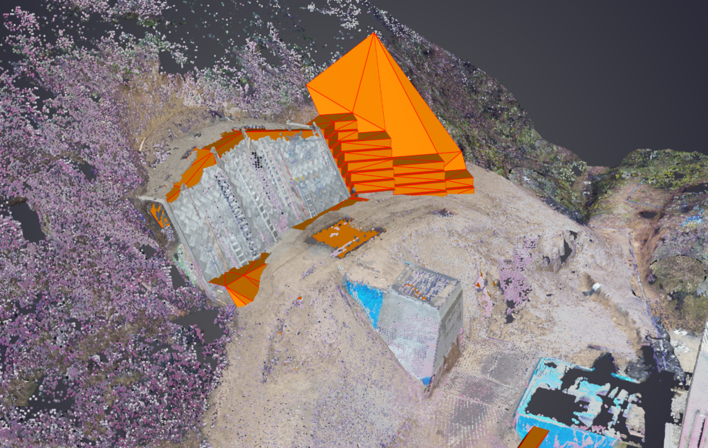 | 作業内容 | ドローンによる写真測量 1式 点群データ処理 1式 設計データ3Dモデル作成 1式 |